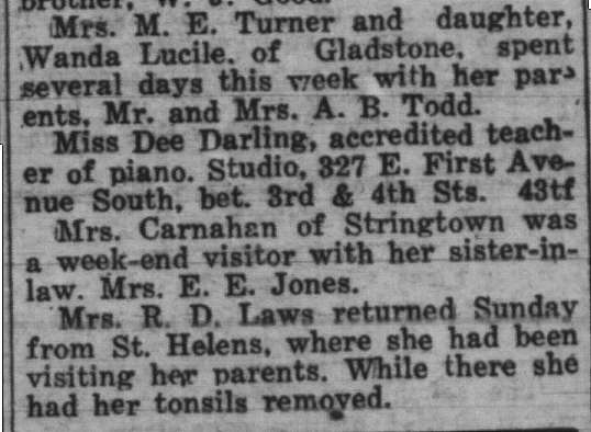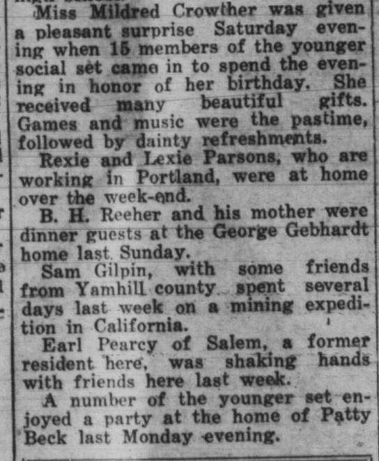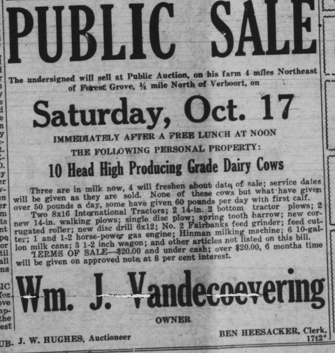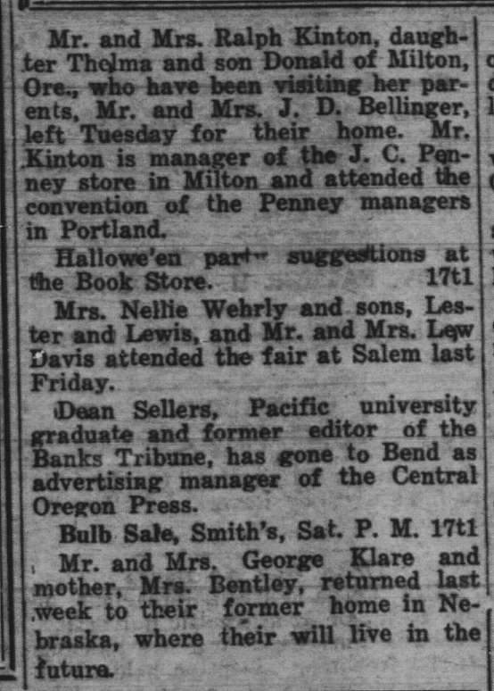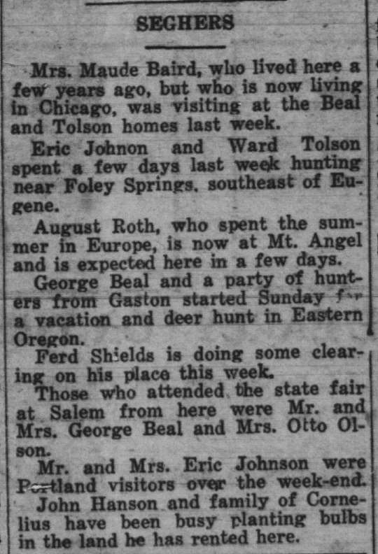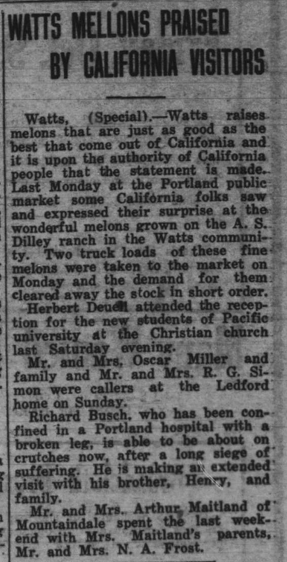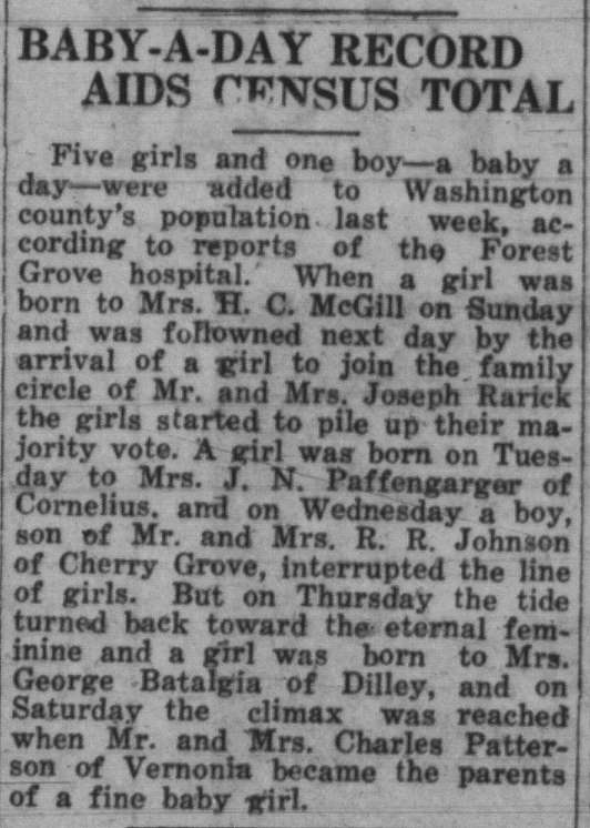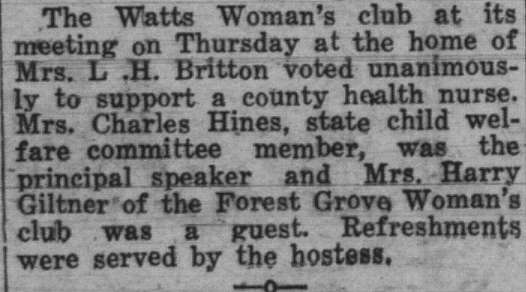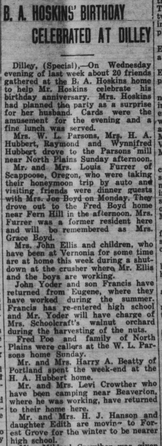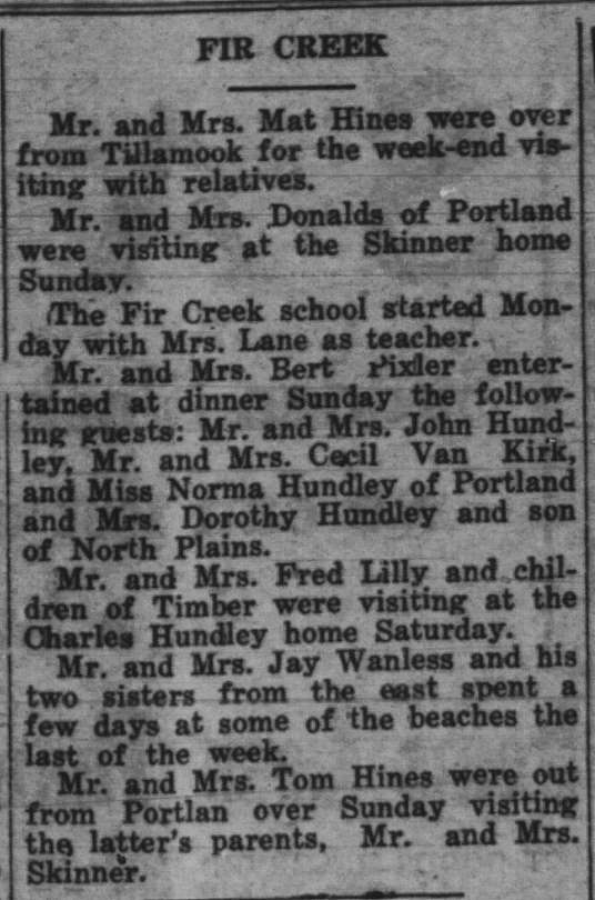 These news clips are selected for news events in and around Forest Grove and Banks that I believe would have been of significance to readers of the time, or of interest to readers of today. They are presented as-is, and without comment. At the time, the newspapers of the day often expressed viewpoints that today would be considered racist, xenophobic, and sexist, frequently using slurs to describe ethnic groups and often stepping outside the norms of what we consider to be ethical journalism today.