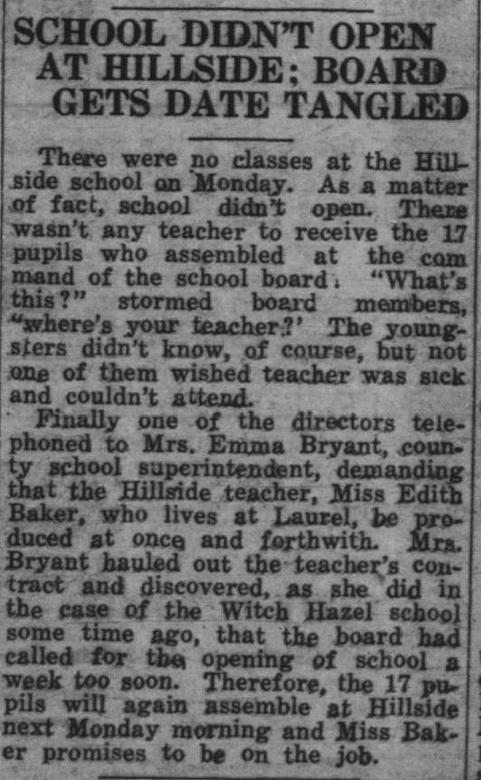 A local school board furiously called the county superintendent when the teacher didn't show on the first day of school. As it turns out, it was their fault: They had botched the opening day of the Hillside school. The teacher wasn't contracted to start until the next week.